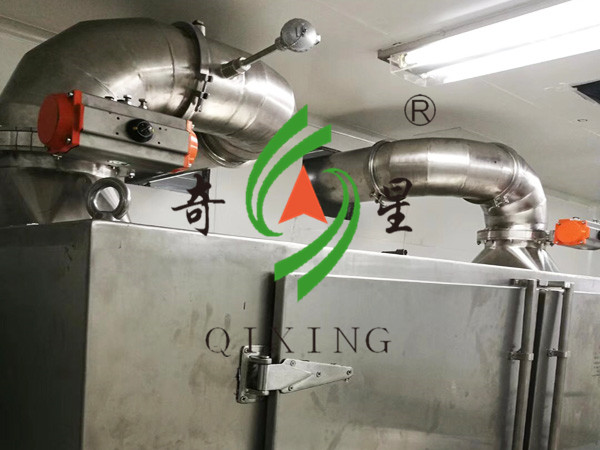该烘箱所有板材均为不锈钢,包括循环风机叶轮、涡壳、排湿风机等均采用不锈钢制作,我们选用了大风量、高风压的离心风机作为循环风机进行强制通风,可以加快物料烘干速度;箱外新风补充口配有初效、中效、高效过滤器;系统可智能化控制湿度,合理排湿,并且设置了不同物料的烘干程序,实现操作的简便性;烘箱所有构件拆装方便,均可进行全面快速清洗。