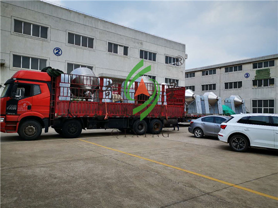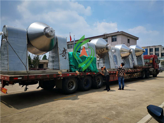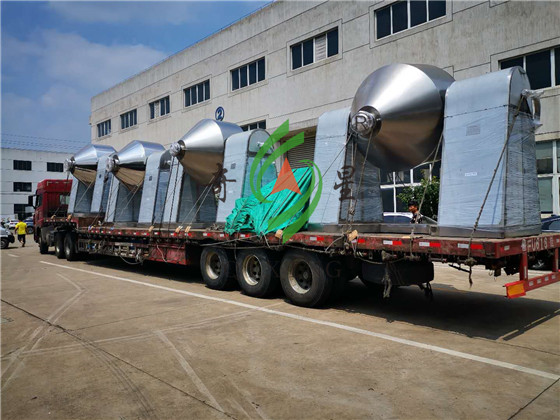 近日,我公司在山东的某客户单位在我司订购的六台双锥回转真空干燥机已装车完毕,完成发货。SZG双锥真空干燥机采用皮带-链条两弹性联接方式,因而设备运行平稳。其热媒介质从高温导热油到中温蒸汽以及低温热水一应俱全。干燥粘性物料时,将在罐内设计“抄板”机构或设置滚珠。