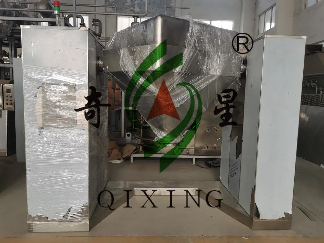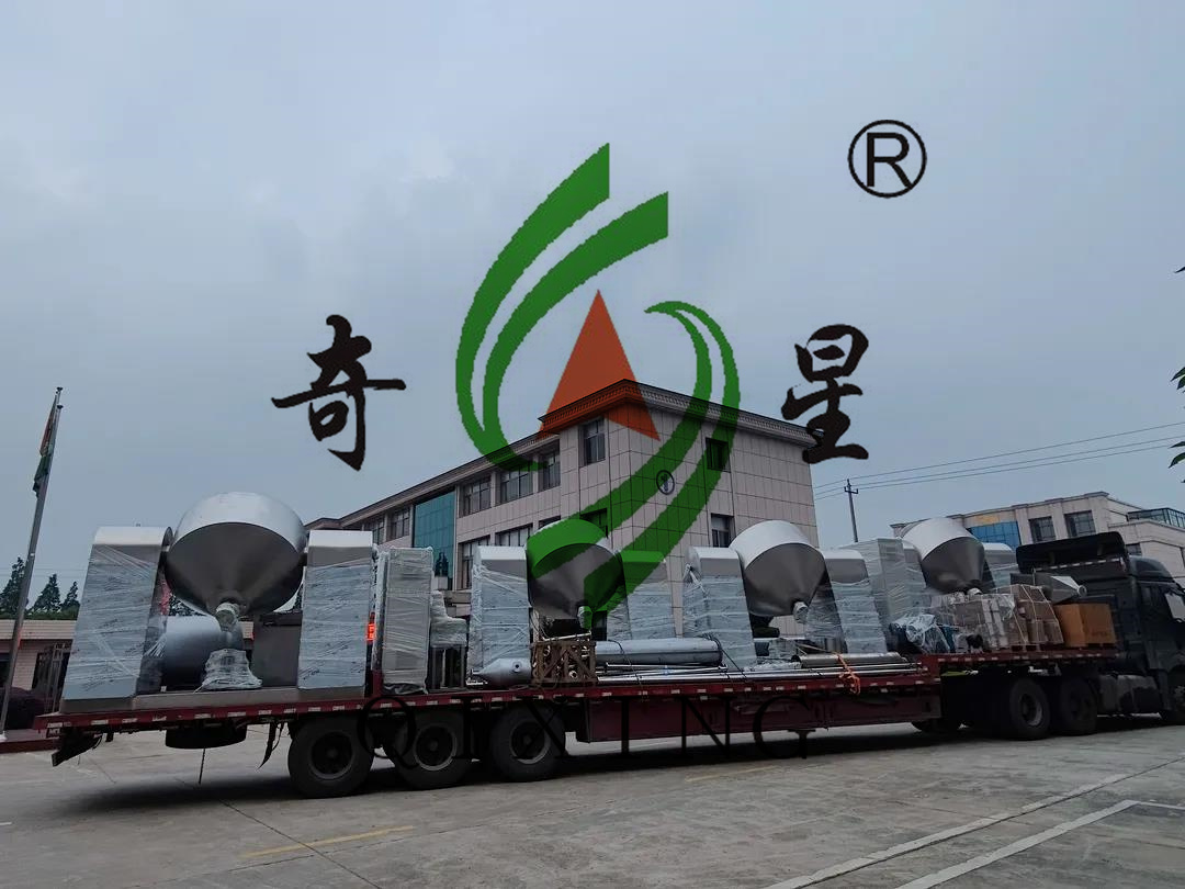 江西某客户订购的专用气流干燥机和四台SZG-1500型双锥真空干燥机已完成发货。SZG系列双锥回转真空干燥机是在密闭的夹层中通入热能源,例如热水、低压蒸汽或导热油,热量经过内壳传给被干燥物料。在动力作用的驱动下,罐体作缓慢旋转,罐内物料不断地混合,从而达到强化干燥的目的。罐内物料处于一个真空的状态,蒸气压下降使得物料表面的水份(溶剂)达到饱和状态而蒸发了,并通过真空泵及时排出回收。物料内部的水份(溶剂)不断地向表面渗透、蒸发、排出三个过程不断进行,物料在很短时间内达到干燥的目的。